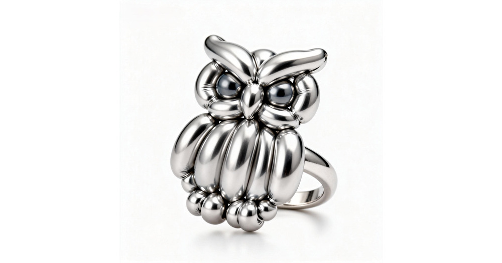 Handcrafted Sterling Silver Balloon Owl Ring – Sculptural Animal Statement Jewelry