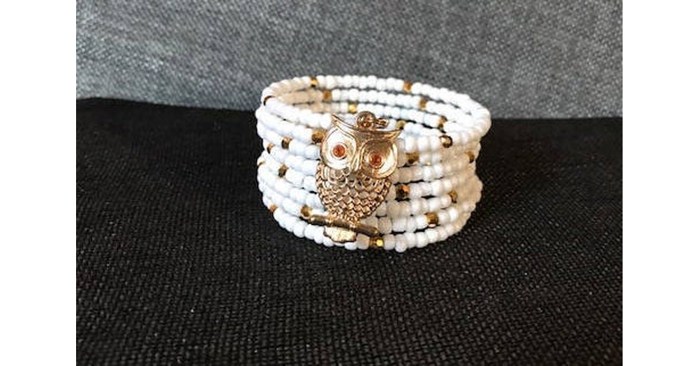 Owl White and Gold Seed Bead Bracelet
