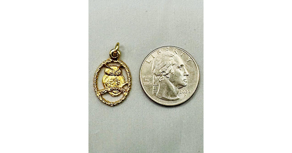 Owl Pendant Charm Gold Toned - Not Marked - Small Perched Bird on Branch
