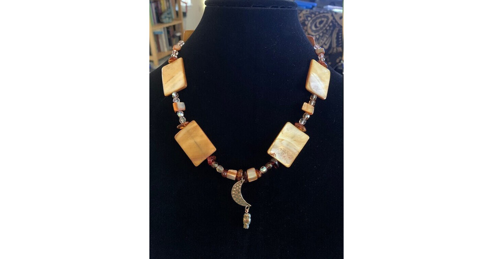 Shell Czech Glass Owl Silver Moon Necklace Spirit Animal Witch Wicca Wiccan