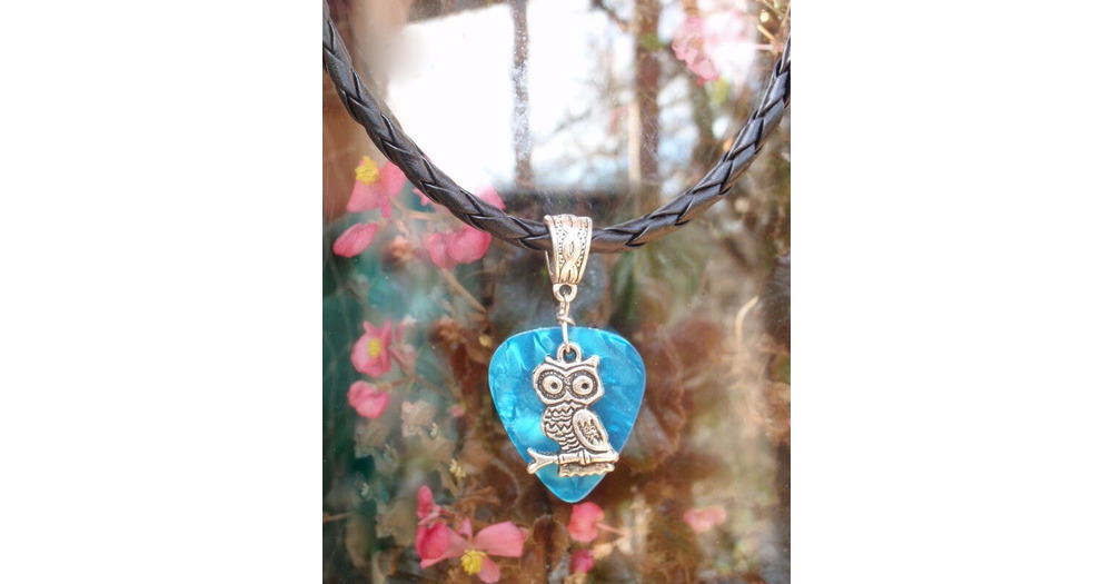 Woodland Owl Necklace, Wildlife Guitar Pick Jewelry, Tibetan Silver Braid Bail, Choice 12 Colors &am