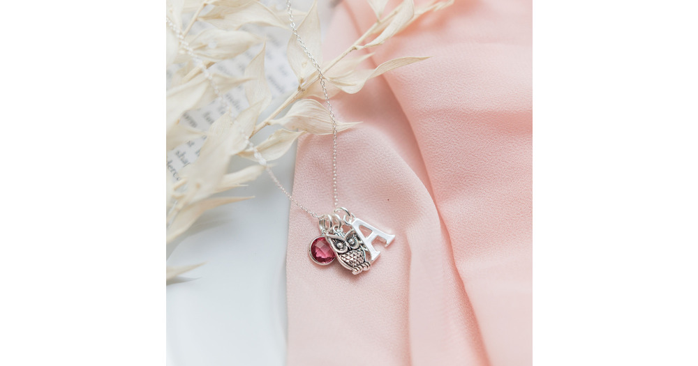 Owl necklace, personalised gifts, owl lover gift, bird jewellery. birthstone initial, graduation pr