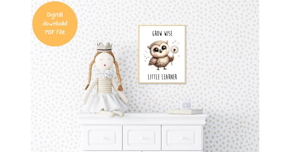 Digital Download - "Grow Wise Little Learner" owl print - Inspirational Quote - Positive
