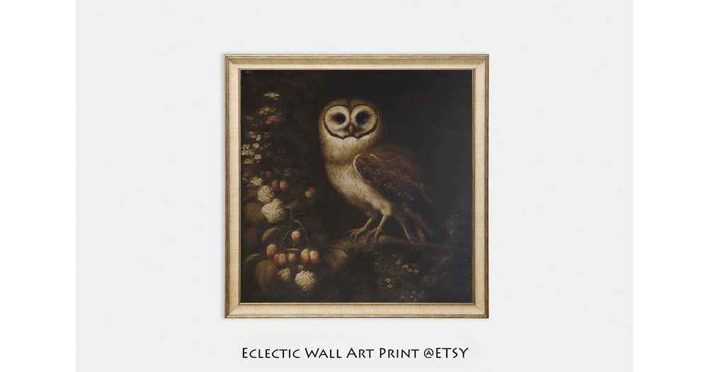 Antique Owl in Forest Oil Painting: Dark Cottagecore Print (Digital Download)