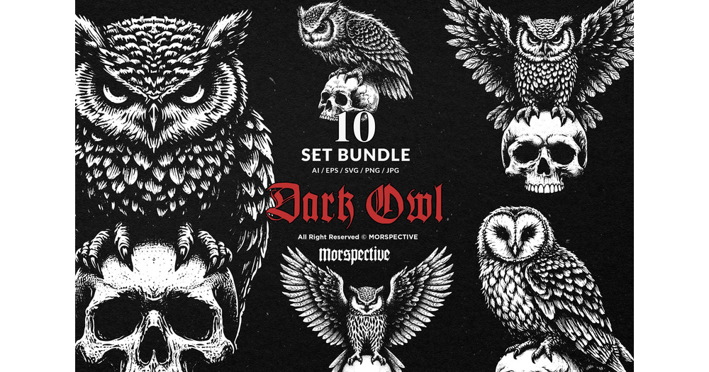 10 Bundle Dark Art Owl Bird Skull Nocturnal Animal Horror Tattoo Clipart Digital File Vector Ai / Ep
