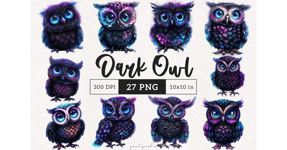 Glittery Owl clipart Dark Owl PNG Mystical clip art Sublimation Junk Journal Cartoon bird scrapbook