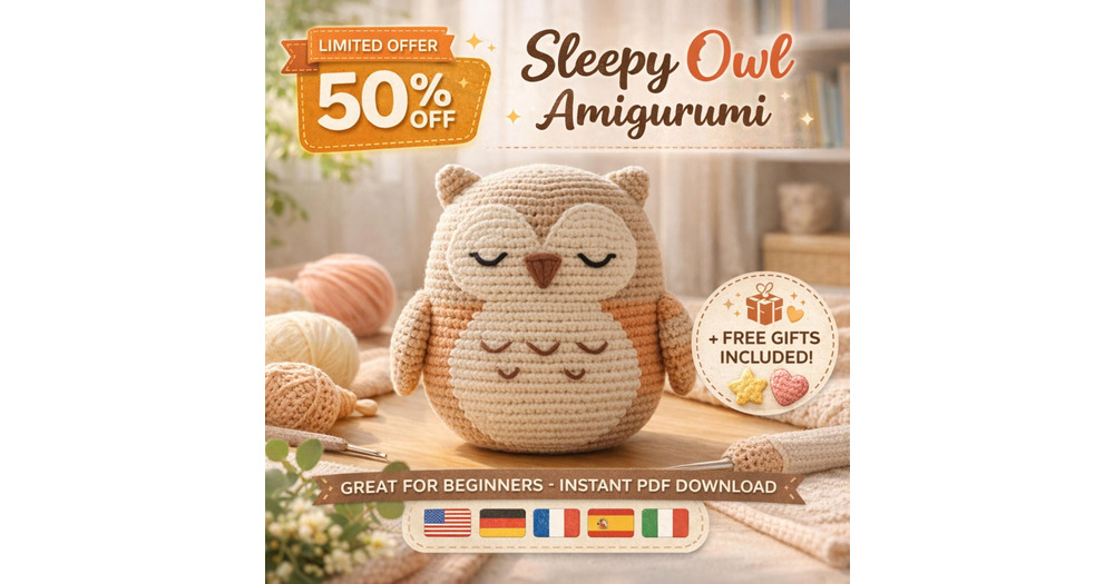 Sleepy Owl Crochet Pattern (En/De/Fr/Es/It), Owl Amigurumi Pattern PDF, Cute Owl Kids Toy Pattern, D