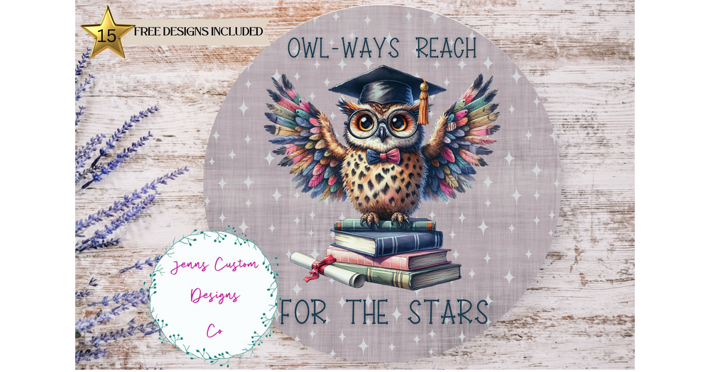 Graduation Owl, Inspirational Saying Sublimation Round Door Hanger Design PNG, Sublimation Design fo
