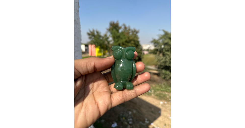 Hand Carved Australian Jade Owl Figurine, Natural Stone Carving