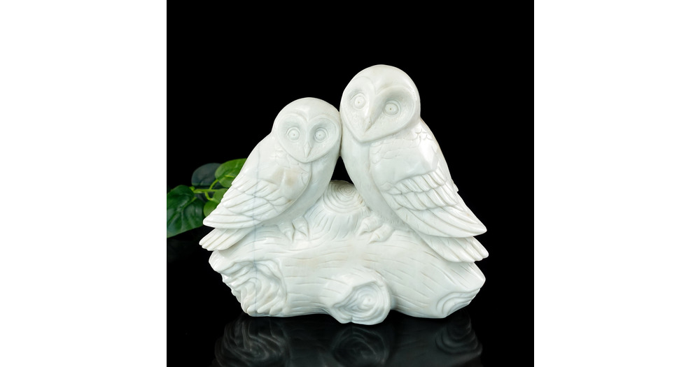 Hand Carved White Jade Owl Statue: Reiki Healing Crystal Decor