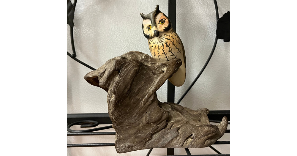 Vintage Collectible Carved Wood Owl On Branch - Very Light Weight Wood
