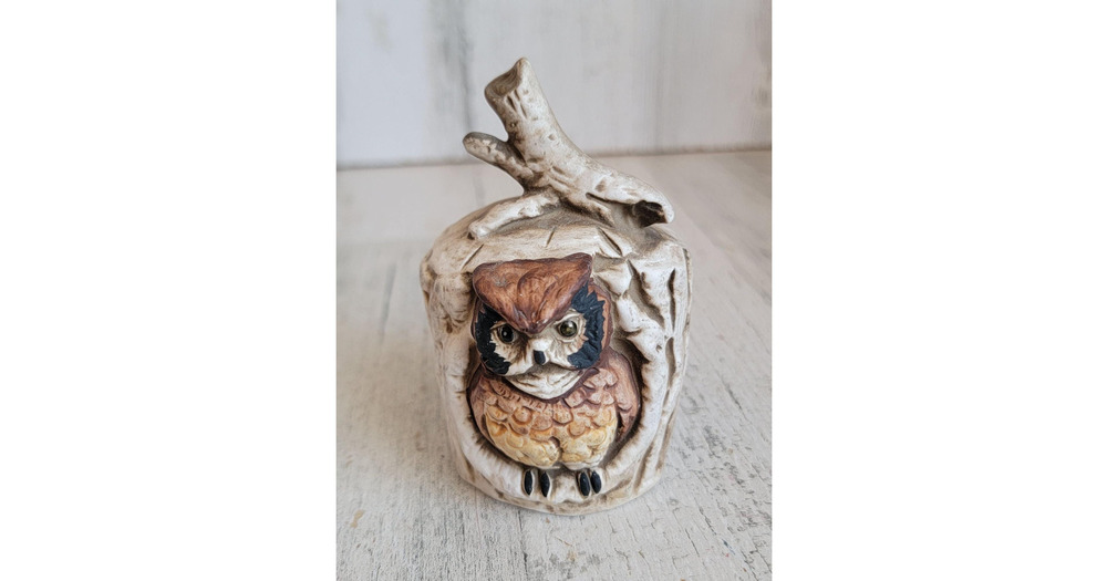 Owl bell scenic bird tree ornament Xmas woods hollow