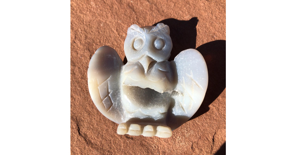 AGATE OWL CARVING with Crystal filled Cavity*2 1/8 inches x 2 1/8 x 5/8 Weighs 1.75 ounce*Owl Totem