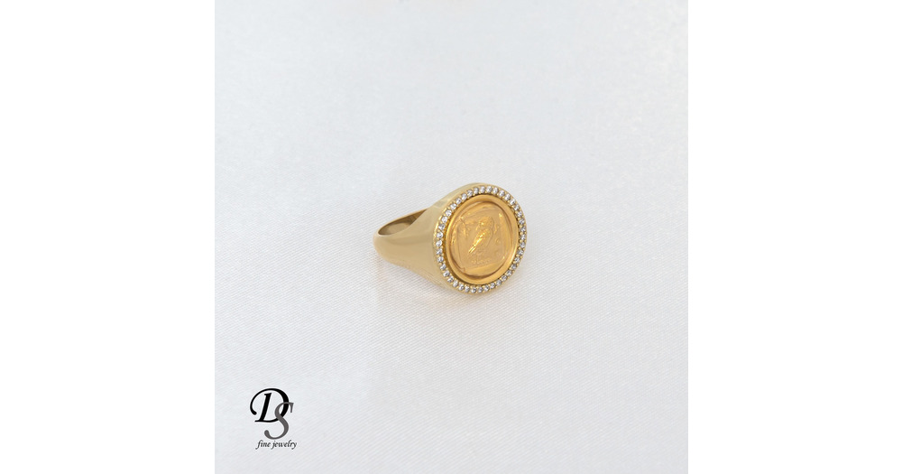 14k Gold Athena Owl Ring: Ancient Greek Halo Signet with CZ