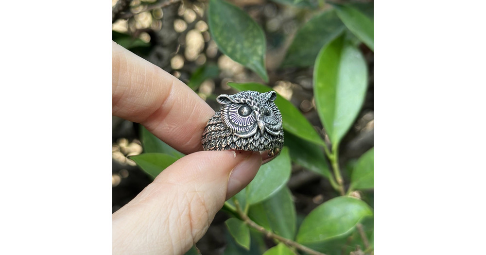 Owl Head Ring STERLING SILVER 925 Symbol of Wisdom Talisman Amulet Totem Animal Bird