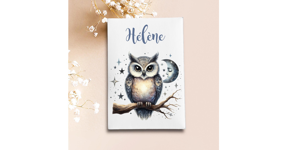 Porte ordonnance motif Hibou et Lune pour ranger ordonnance, carte vitale, carte mutuelle, rangement