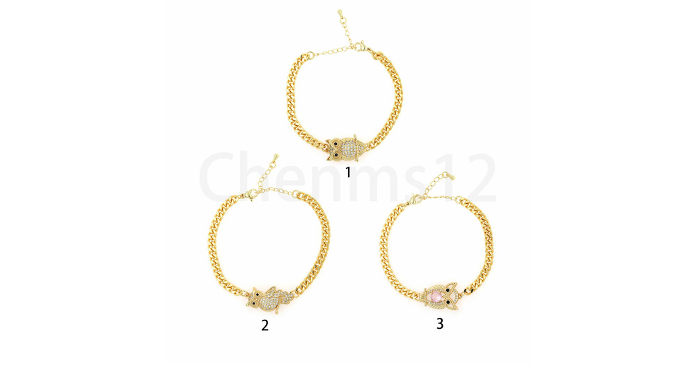 Gold Chunky Bracelet,Owl Bracelet, Micropavé CZ Animal Bracelet, Curb Chain Bracelet, 18K Gol