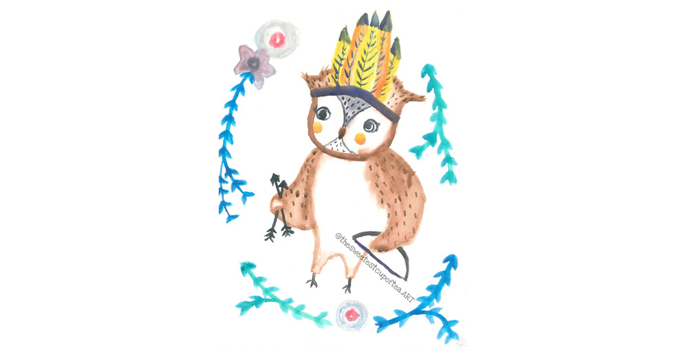 Julian the Warrior Owl : Watercolor Painting Print // Nursery Decor, Woodland Creature Series, Whims