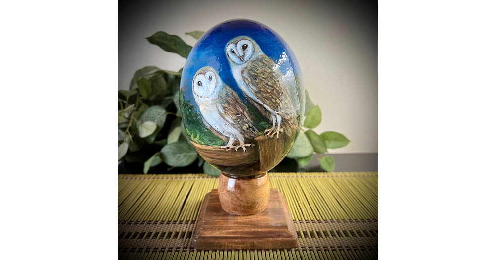 Barn Owls - Hand Painted Ostrich Egg