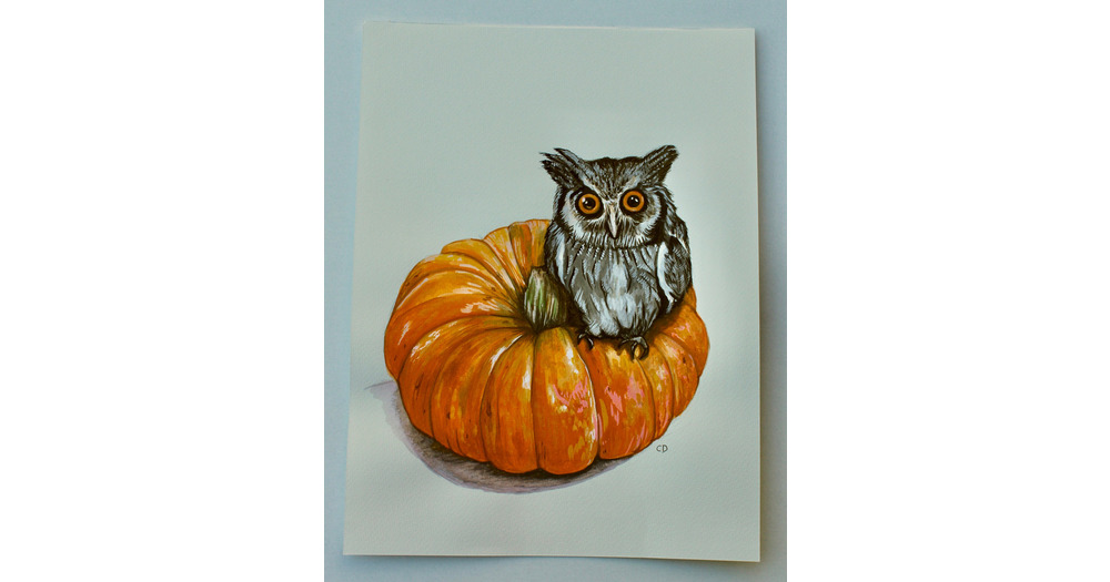 Pumpkin with Baby Owl Painting