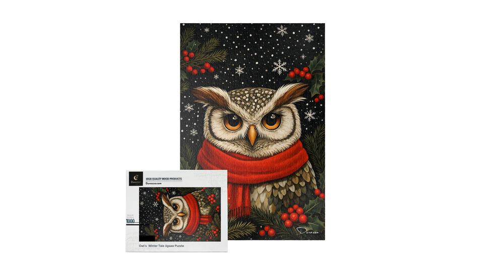 Winter Owl Jigsaw Puzzle 500/1000 Piece - Cozy Forest Nature Gift | Owl's Winter Tale - Durazza