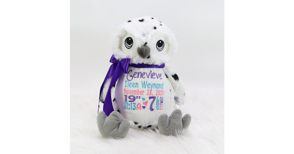 Personalized Stuffed Animal, Personalized Owl, Birth Announcement, Embroidered Stuffed Animal, Perso