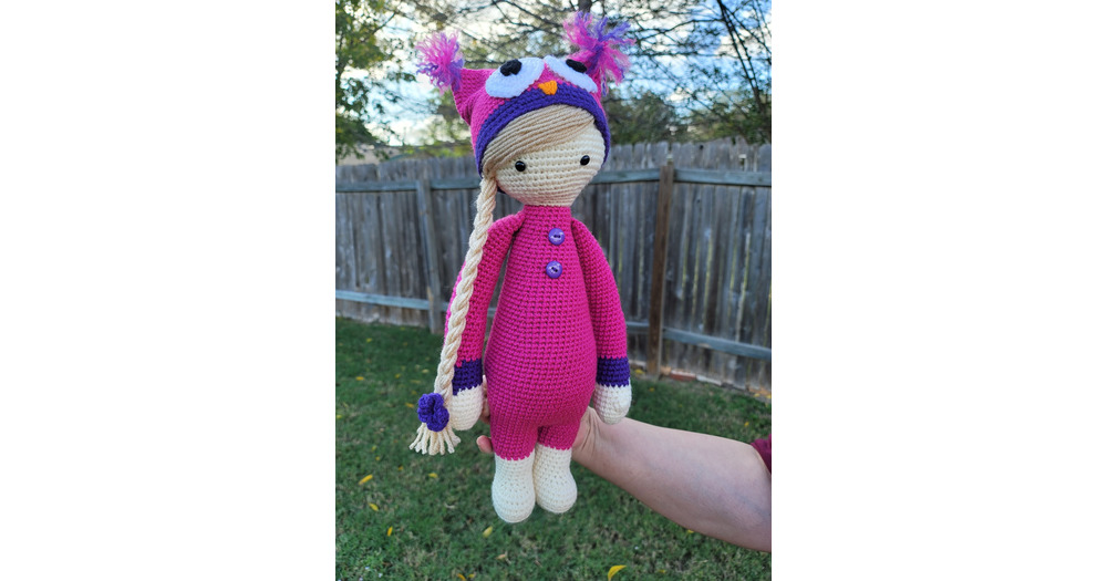 Amigurumi Tall Doll with Pink Owl Hat Crochet Stuffed Toy Plush | READY TO SHIP