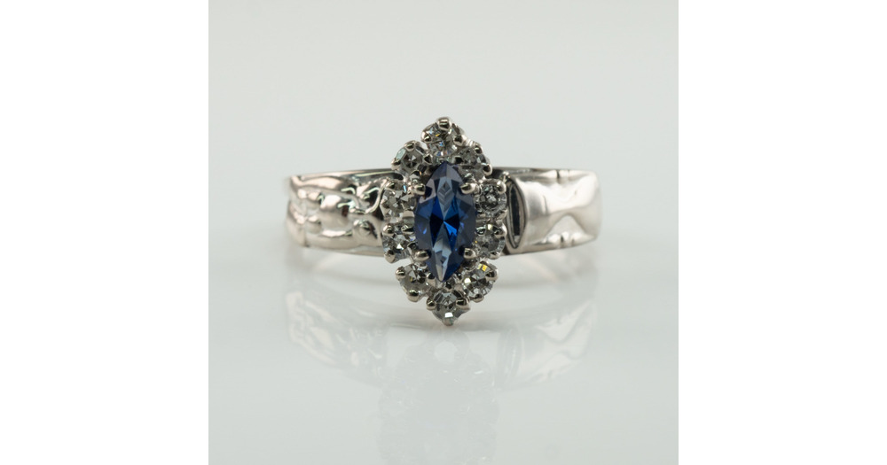 Owl Hourglass 18K White Gold Natural Sapphire Diamond Ring High Setting