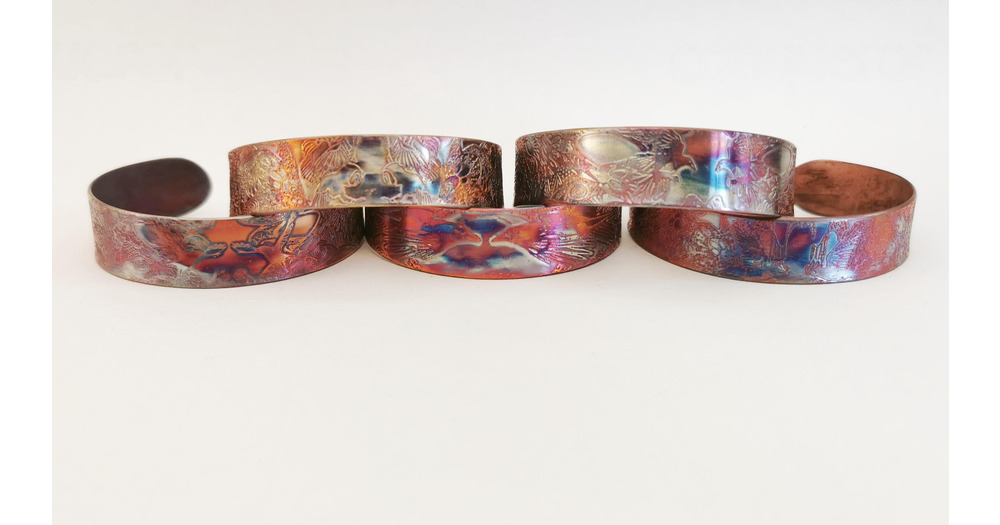 Etched Copper Cuff Bracelet - Rook, magpie, raven, owl, crow design - slim size