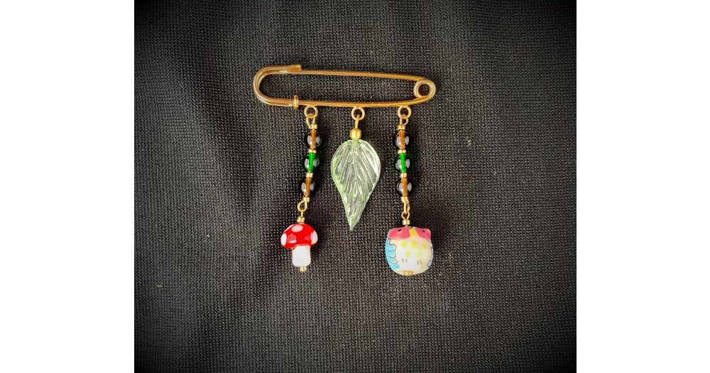 Woodland Critter Charm Pin, Fall Pin, Owl Jewelry, Toadstool Jewelry, Whimsical Jewelry, Scarf Pin,