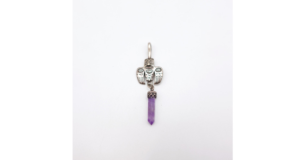 Southwestern Silver Totem Owl and Amethyst Pendant Signed A 92 ICC and Marked 925 - Worldwide Postag
