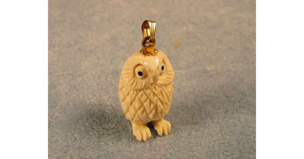 VTG Ivory-Color Carved OWL Pendant for Necklace