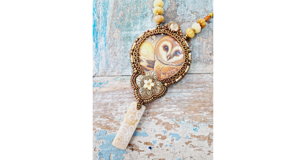 Bohemian style owl and sunset necklace.