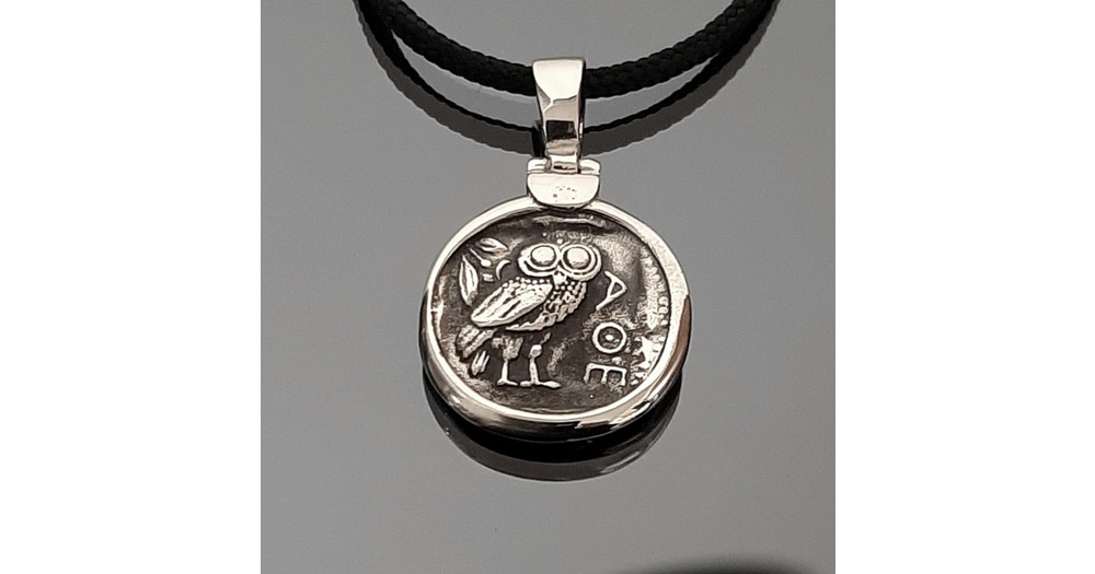 AthenaTetradrachm, Owl Necklace: Greek Mythology Coin Pendant, Sterling Silver replica.