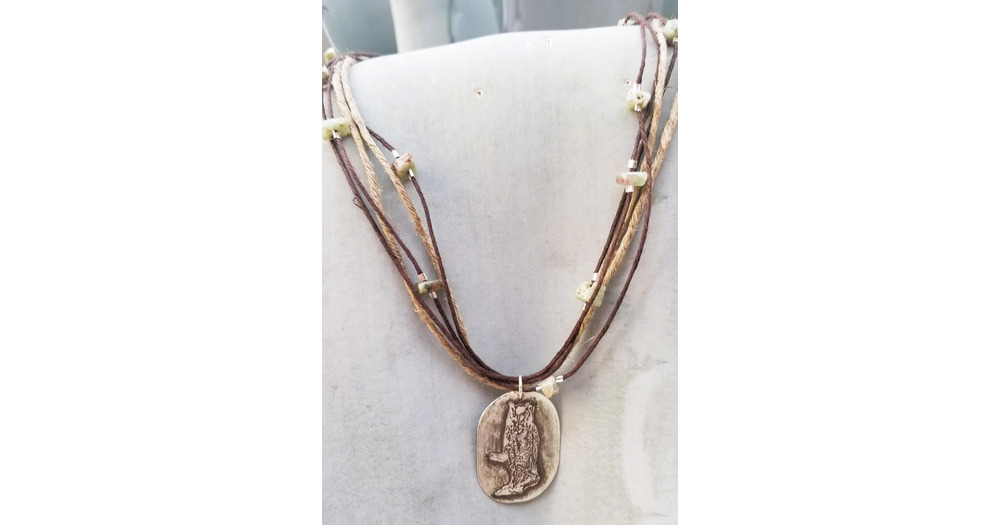 20" Silver Great Horned Owl on Hemp Necklace