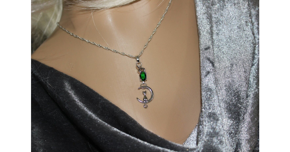 Collier chat assis lune hibou de cristal,bijou petit chat argent 925,cadeau nature,plaisir animal