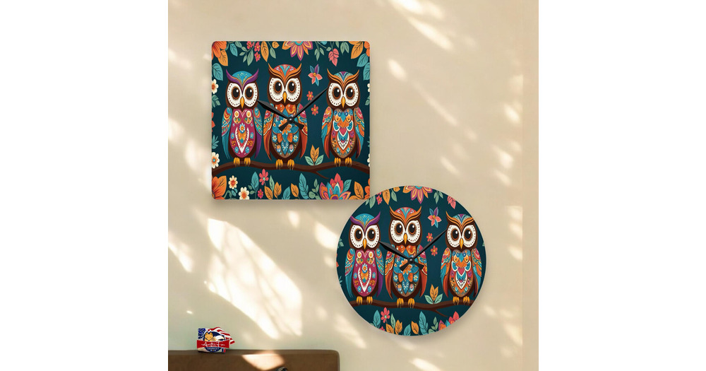Boho Owl Wall Clock with Paisley Design Hippy Style Home Decor Unique Owl Lover Gift Durable Acryli