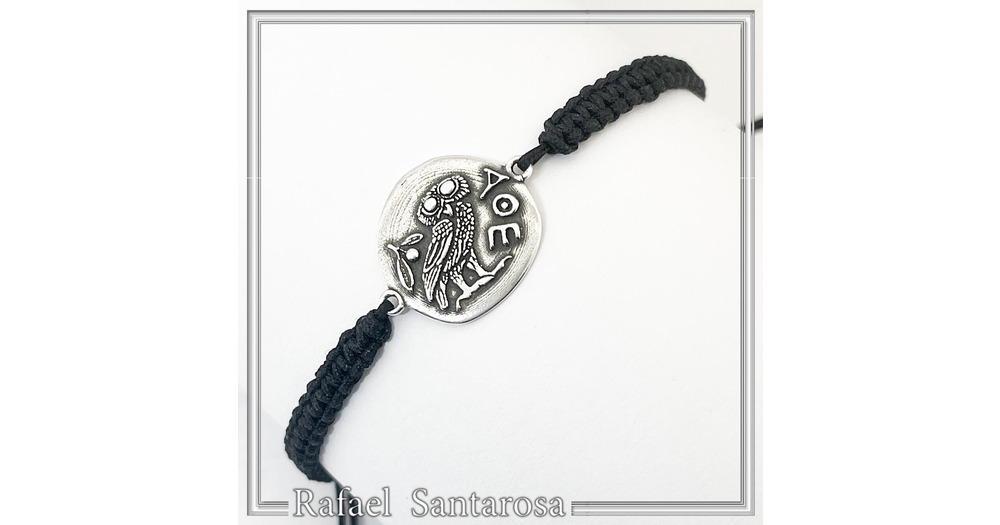 Owl Coin Tetradrachm macrame Oxidized Sterling Silver Bracelet: Greek Museum Jewelry