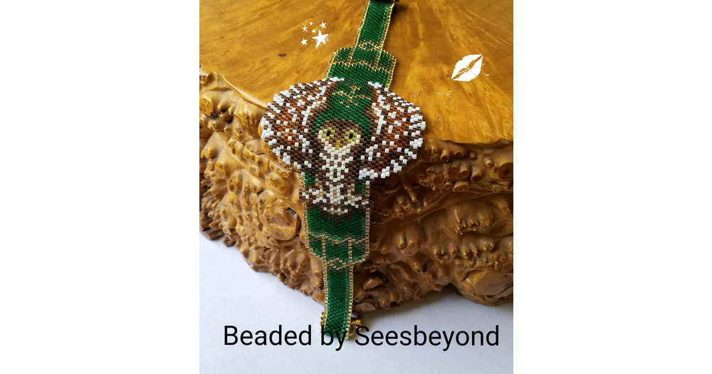 Athene Noctua Little Owl  Hand Beaded Bracelet