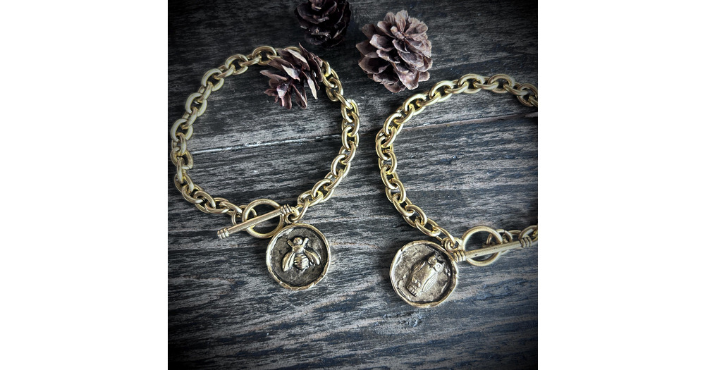 Gold Owl or Bee Charm Bracelet: Chunky Chain, USA Plated Jewelry