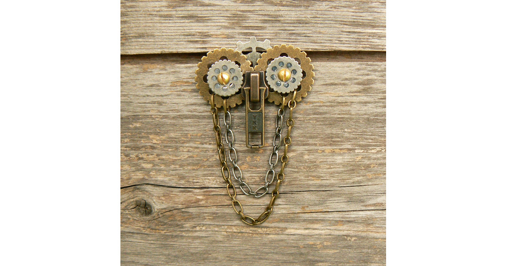 Steampunk Owl Zipper Brooch