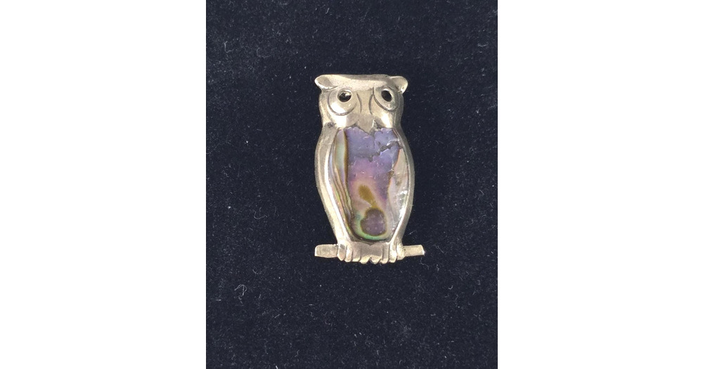 Sterling Silver Abalone Shell Hoot Owl Brooch, Vintage Mexican Southwestern Jewelry, Wisdom All Know