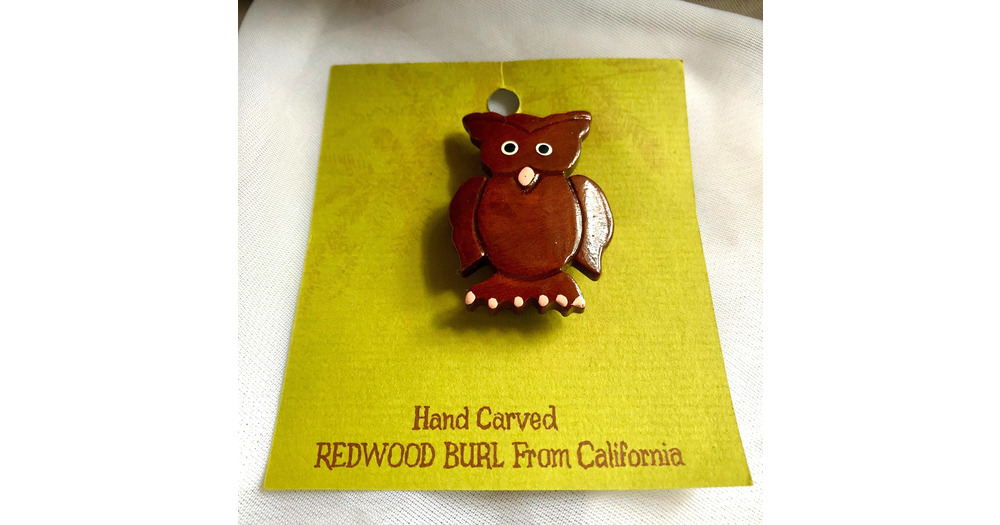 Vintage Hand Carved Californian Redwood Owl Pin by Niblick