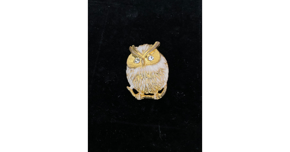 Vintage Owl Brooch, 1980's Gold Owl Brooch, Enamel Owl Brooch, Pin, 1980's Brooch, Owl Jewel