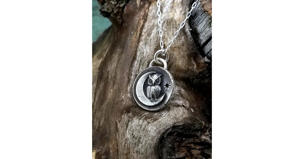 Silver Owl and Crescent Moon Necklace, Owl Charm, Celestial Owl Pendant, Cute Little Owl Jewelry, Wo