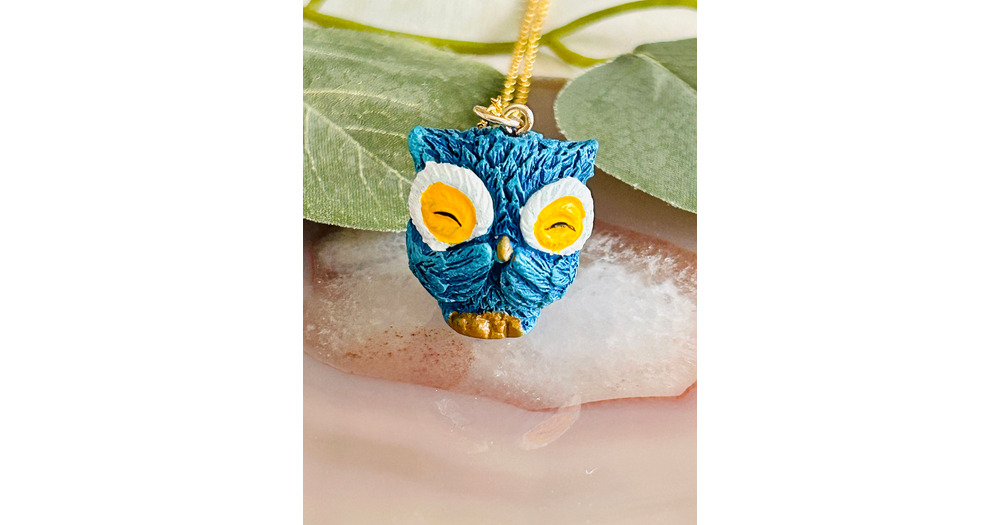 Blue Owl Necklace: Kids Gold Chain Animal Pendant