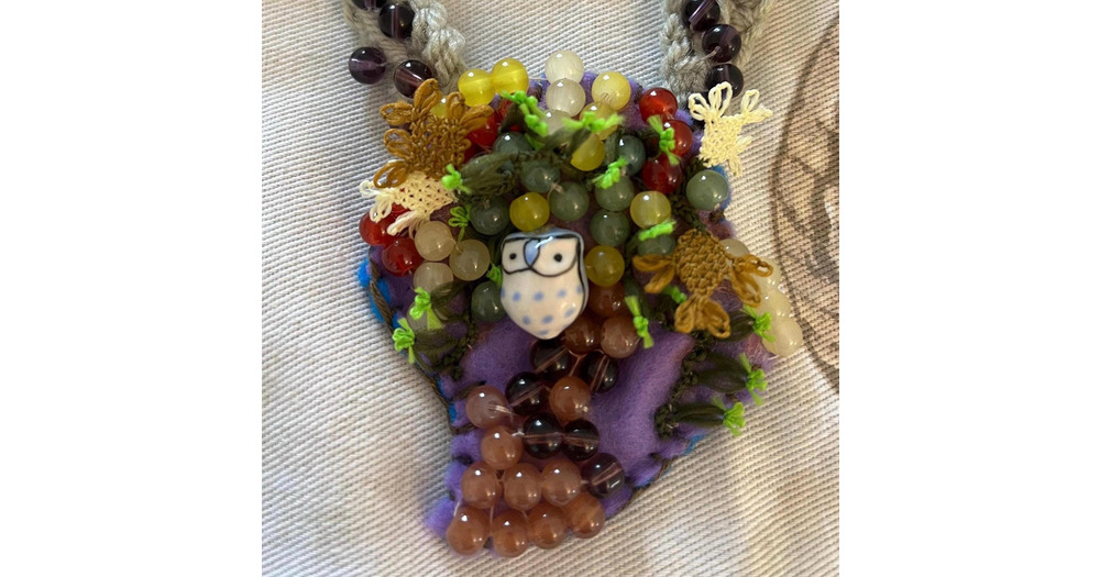 Embroidered Owl Necklace: Crochet Beaded Jewelry