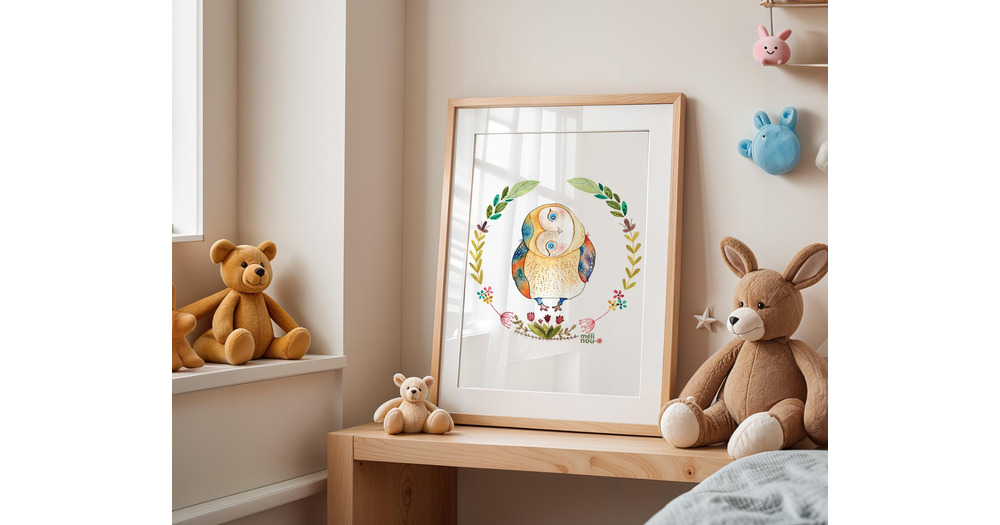 Owl, Digital, Watercolor Illustration, Baby Nursery Wall Art, Playroom, Toddler Room Poster, Whimsic