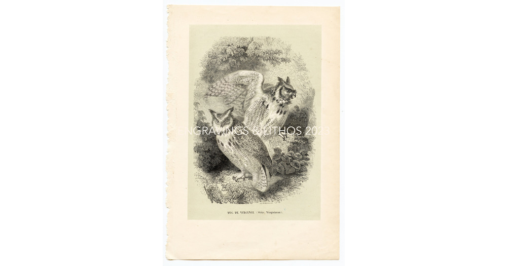 Eagle owl - Great horned owl - Tiger owl or Hoot owl - Hard to find "Histoire Naturelle des Ois
