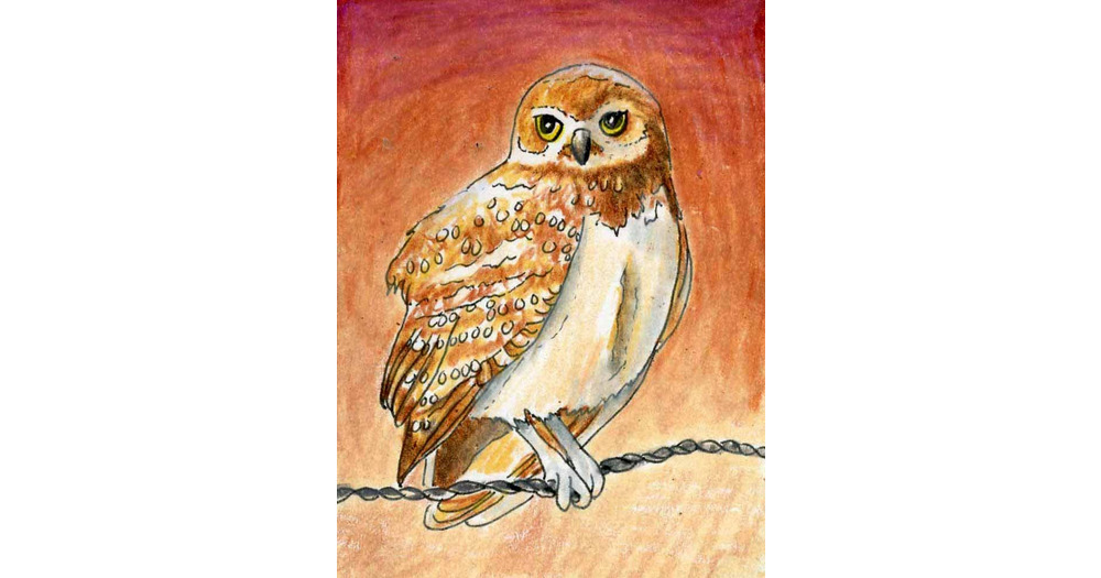 Owls, Wildlife art, Print of Original Drawing, Bird Art, Title- Burrowing Owl